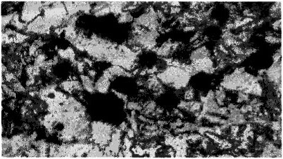 Цепочки из слившихся пор размером до 5 мкм в ликвационных прослойках. Отдельные поры размером > 5 мкм |