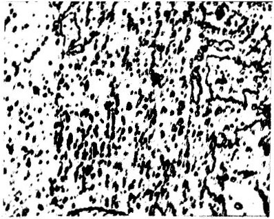 Множественные цепочки пор (расстояние между цепочками порядка 1 - 2 зерен) |