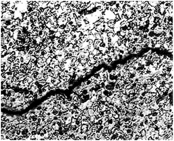 Стадия развития микроповрежденности (увеличение 1000 крат) |