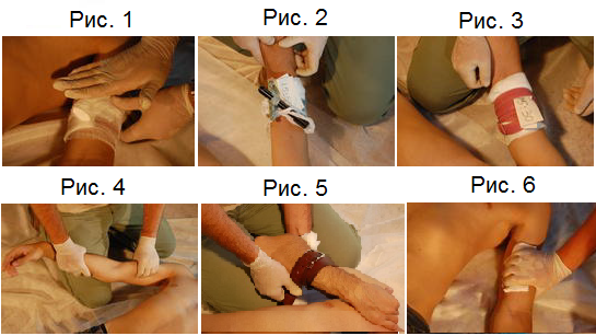 Рисунок 6 --- Наложение кровоостанавливающего жгута.